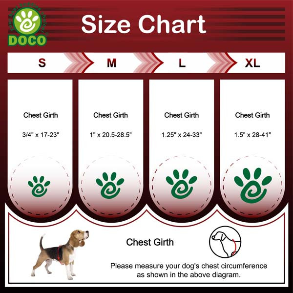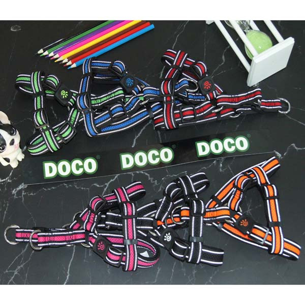 DOCO® Dual Layer Air Mesh Reflective Step-in Harness features breathable and durable high quality air mesh. This harness provides a comfort fit, total control and style between your chest. Ultra comfort, lightweight design and dual layered for higher tensile strength. Easy on and easy off, durable side release plastic buckle with adjustable tri-glide for custom fits. Heavy-duty stitching for lasting quality and fully welded metal D/O-Rings for higher tensile force. Solid and vibrant colors are easy to see. Piping has reflective stitching to ensure your buddy is safe and seen at all times. Make sure to select the matching DOCO® leashes to complete your buddies look! Air Mesh is breathable and light weight, keep your pet cool and ventilated and super soft and comfortable on Dog's skin and fur. All of DOCO® harnesses are designed to reduce stress, allowing weight to be distributed evenly through the chest and shoulders when your buddy during walks. * Match with DOCO® Mesh Leash: DCA1348 Special features Hi-Density quality air mesh fabric Breathable and SUPER LIGHT WEIGHT Dual Layered mesh for higher tensile strength Reflective piping thread stitch throughout the collar for the nighttime safety Heavy duty D-Ring for leash and ID tag Durable plastic buckle on the top for easy on and easy off Tri-glide for easy size adjustment Vibrant colors are easy to see at all times!