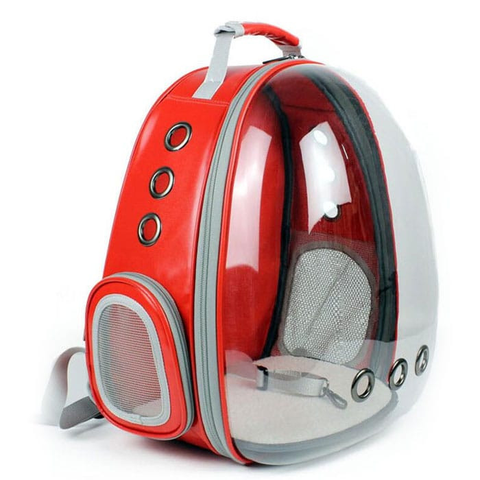 Space capsule designing makes the bag cute, fashion,lightweight design without weight feeling,you will be the focus of the crowded Space Capsule Style + Transparent Window Design, and you can wear the backpack either on your back or in your front,which allows your pets to enjoy the sunshine and scenery with you and interact with the outside world Made of selected canvas + hign density acrylic material,exterior breathable hemispherical transparent cover helps ease pet anxiety. Note:There is a layer of protective film on the backpack, pls tear it off when you received it. Built-in lock can prevent the pet from running away or getting lost when the bag is open,large ventilation holes on the side of the bag,promote air circulation, make your pet cool and comfortable Dimension: 12.6 "L x 11.5 "W x 16.5 "H. Carrier Weight:2.7 Pound fits pet UP to 14 pounds cat and 11 pounds dog.Suitable for front carrier bag or backpack, or single-hand carrying. Best choice for travelling, walking, hiking, hang out