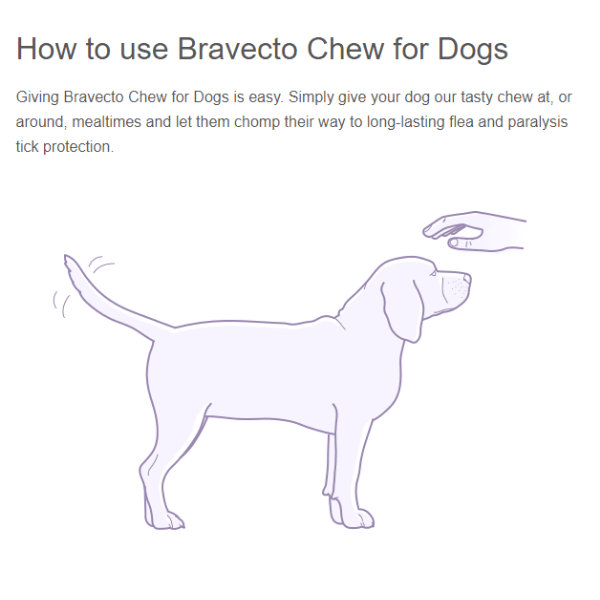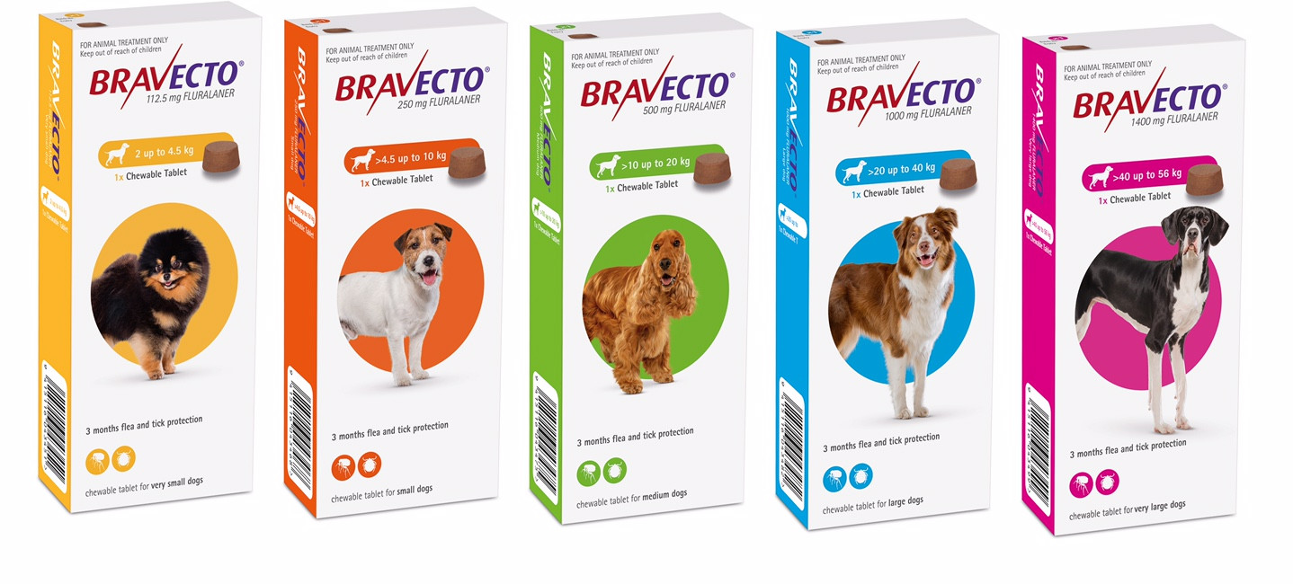 Bravecto For Dogs – Single Tablet (containing 250 mg Fluralaner) Bravecto is a chewable oral flea and tick treatment for dogs which lasts for 3 months! Currently the only oral tablet on the market that lasts for 12 weeks. One of the most popular flea treatments because it works so well. Some of the Key Benefits: Control’s tick and flea infestations on dogs for 12 weeks. Safe for use in breeding, pregnant and lactating dogs Aids in the control of flea allergy dermatitis Starts killing fleas within 2 hours Kills 100% of fleas within 12 hours after treatment Washing, swimming, and grooming will not affect efficacy Made Specifically For: Treating fleas on dogs and puppies over 8 weeks of age