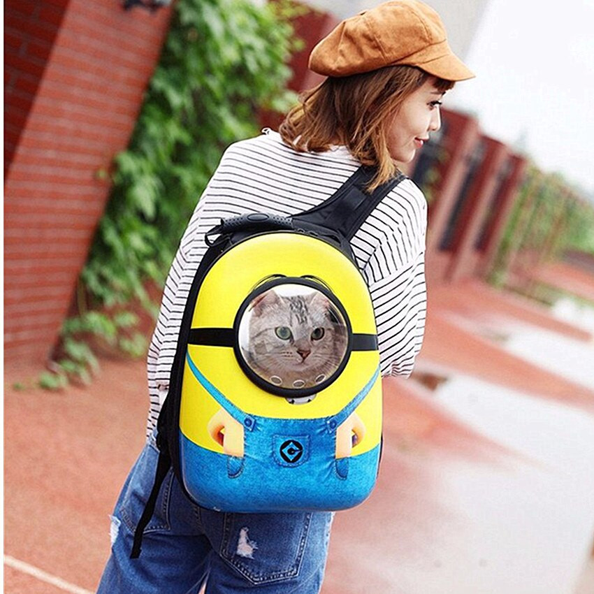 Space capsule designing makes the bag cute, fashion,lightweight design without weight feeling,you will be the focus of the crowded Space Capsule Style + Transparent Window Design, and you can wear the backpack either on your back or in your front,which allows your pets to enjoy the sunshine and scenery with you and interact with the outside world Made of selected canvas + hign density acrylic material,exterior breathable hemispherical transparent cover helps ease pet anxiety. Note:There is a layer of protective film on the backpack, pls tear it off when you received it. Built-in lock can prevent the pet from running away or getting lost when the bag is open,large ventilation holes on the side of the bag,promote air circulation, make your pet cool and comfortable Dimension: 12.6 "L x 11.5 "W x 16.5 "H. Carrier Weight:2.7 Pound fits pet UP to 14 pounds cat and 11 pounds dog.Suitable for front carrier bag or backpack, or single-hand carrying. Best choice for travelling, walking, hiking, hang out