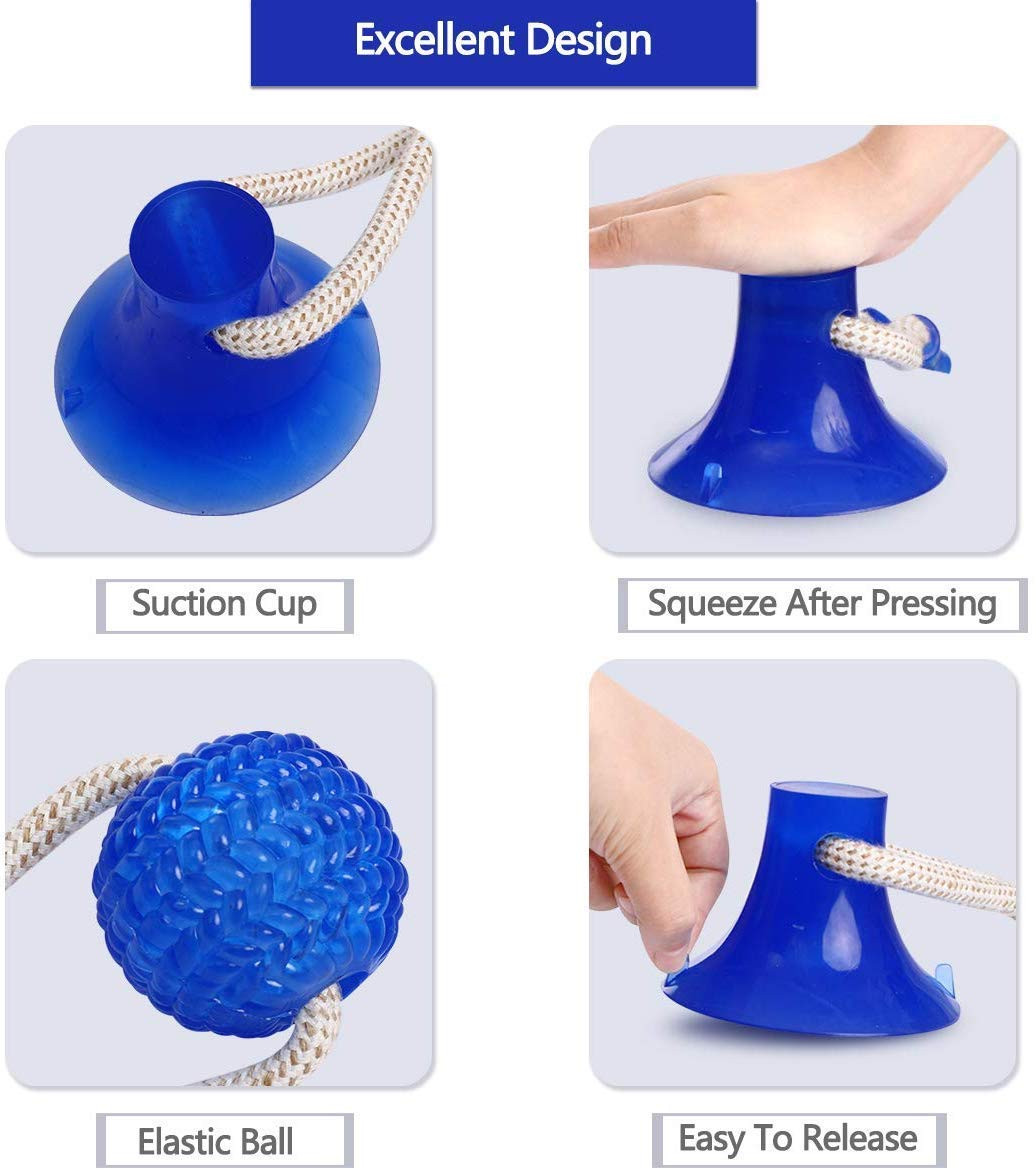 Suction Dog Toy-- Please moisten the suction cup then squeeze the air out when press it hardly to the surface for stronger fixtion, and also make sure the surface is smooth such as Ceramic tile floor, door and glasses. THIS DOG TOY SUITS MORE FOR SMALL AND MEDIUM SIZE DOGS. Multifunction Dog Molar Bite Toy-- This dog chew toys are great interactive dog toys. It's good dog toys for boredom, a teeth cleaning toys for puppies as well. It helps to keep teeth clean and freshen the breath. Perfect Self-playing Dog Toy-- This dog chew toy has great bonce with rope and ball. It would be durable dog toys to keep your pets busy, thus no time to bite your household furnitures. High-quality Safe Material-- Our dog molar bite toy is Made from food-grade TPR rubber materials, environmental friendly, safe and harmless to your beloved pets.