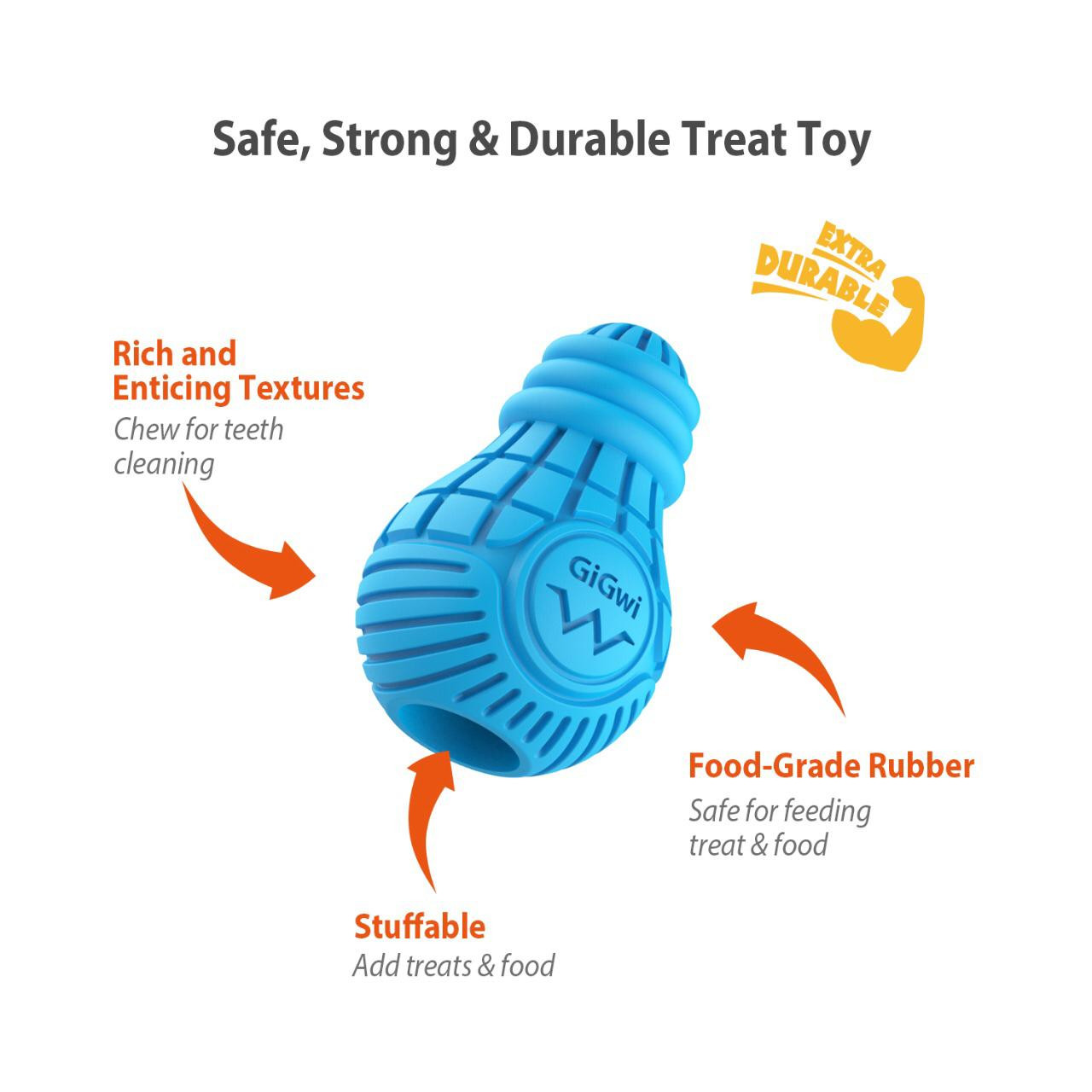 The Gigwi Rubber Bulb is a high quality chew toy that has been designed in the shape of a big rubber light bulb. The unique shape of the toy allows for inconsistent and unpredictable movement when thrown, stimulating your dogs natural prey drive as well as keeping them alert and agile. Deep, textured grooves line the outside of the toy, which helps to clean and strengthen teeth for improved dental health. The small, Red toy is perfect for a wide variety of dogs breeds and is completely non-toxic. Safe & Durable – The stuffable dog chew toys bulb is made from well- selected 100% natural rubber and is non-toxic, it’s sufficient durable and strong to chew for your dogs. Material and production process meet European and American environmental quality standards and safety requirements. Unique Design & Clean Teeth – We designed one hollow bulb with multiple special textured surface which is easier to pick up, grip, bite and clean teeth. The indestructible dog toys also helps on chewing, separation anxiety, teething, boredom, digging, barking and more! Great for Stuffing – The GiGwi dog dispenser toy is even more attractive when it’s stuffed with any dog favorite foods in appropriate size. You could apply some wet food, such as peanut butter on the surface and some dry treats biscuits, canned food, snacks into the hollow. Easy to Clean – The dog chew ball can be cleaned up pretty good in the dishwasher or hand wash with soap and water. This pet toy would not leave scratches in floor when your dogs play too rough with it.
