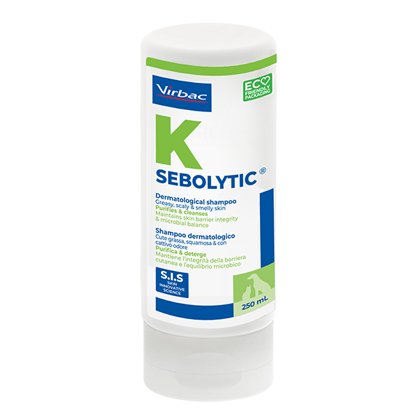 Sebolytic is a medicated shampoo for cats and dogs. Containing an original combination of ingredients including tea tree oil. Developed to be used as an aid in the management of scaly, dry and greasy skin conditions. Sebolytic shampoo is a unique cleansing shampoo that removes scales, crusting and excess oil on the skin surface of dogs and cats, helping to regulate sebum production and skin odour. Product features & benefits : Regulates oil production – Includes zinc gluconate and vitamin B6 which help to regulate sebum production. Exfoliates - Salicylic acid, aids in eliminating excess scales, and piroctone olamine, a compound used to help manage bacterial infections. Sooths - Contains tea tree oil which is known for its soothing effect. Tea tree oil is also known to have bacteria and fungus eliminating properties which help to reduce skin irritation. Neutralises unpleasant smells Helps to maintain skin barrier integrity