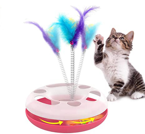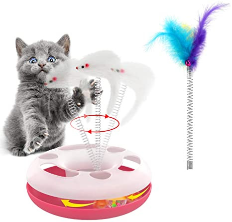 Complete interactive toy with a circle base, a spinning ball and a mouse motion to exercise cat’s natural instinct with fun Give your cat hours of fun and entertainment - Perfect to keep your cat healthy and active Perfect for cats of all sizes from kittens to grown up cats - fun exercise for your cat -satisfies your cat’s natural instinct Durable and portable- Can be used at home or even on the go - Durable and long lasting Measures 9" x 9" x 2.5" High- Attachable Mouse on a metal wobbly holder 8" Tall