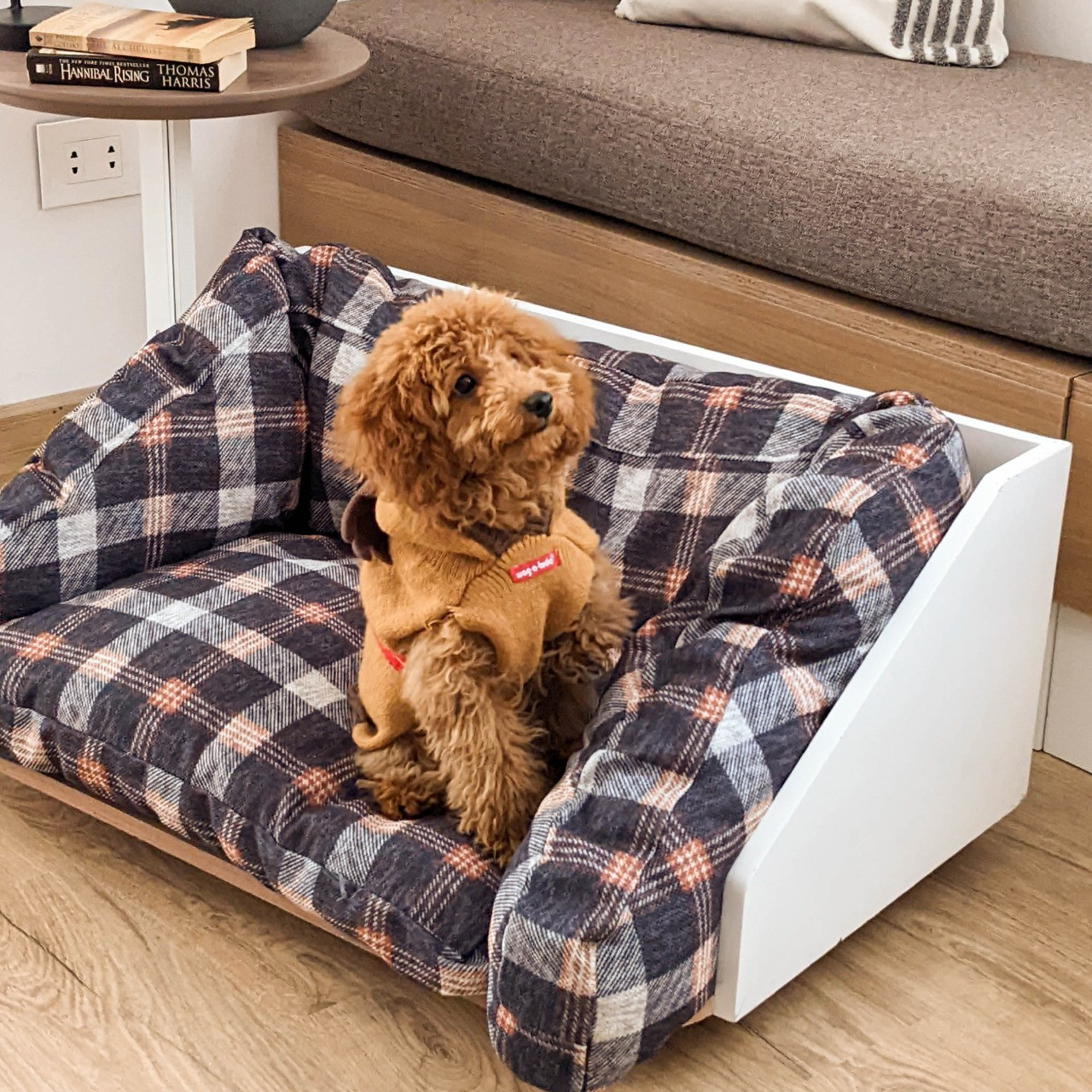 Treat your pet to a light sleek natural wood seating and cozy cushioning. Your pet will now snug in style with a removable cover that will make eliminate the fur shedding hassle. Product Details: Product Warranty: Enjoy a 1-year warranty on our Pet Bed range against manufacturing defects. Product Care: Machine washable. Specifications Dimensions (in cm) 85L x 30H Filling Fiber Material MDF Wood (Body), Plywood (Seat & Legs) Suitable For Indoors