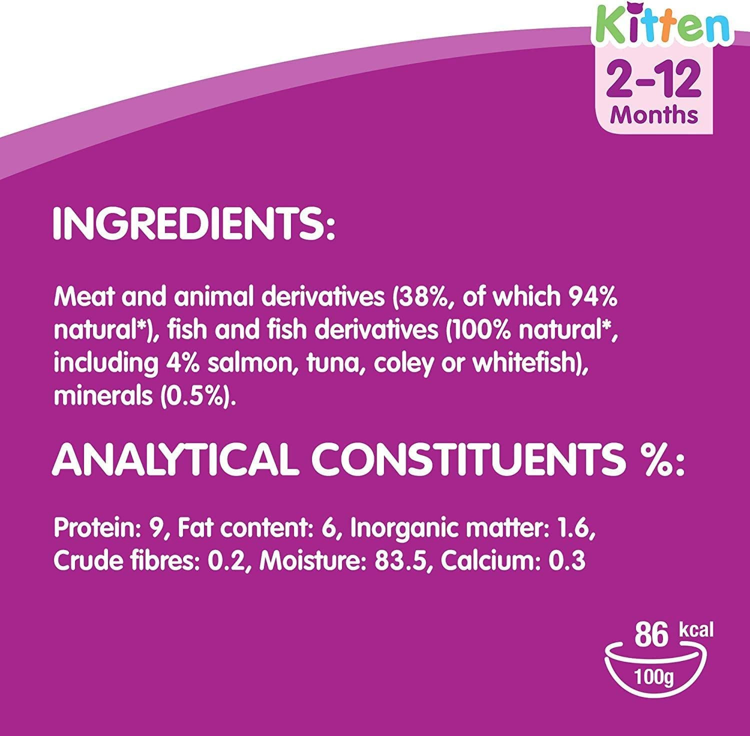Complete food for kittens With calcium to support the development of strong bones With vitamin E and minerals to support a strong immune system No artificial flavours, colours or preservatives A perfect balance of vitamins and minerals