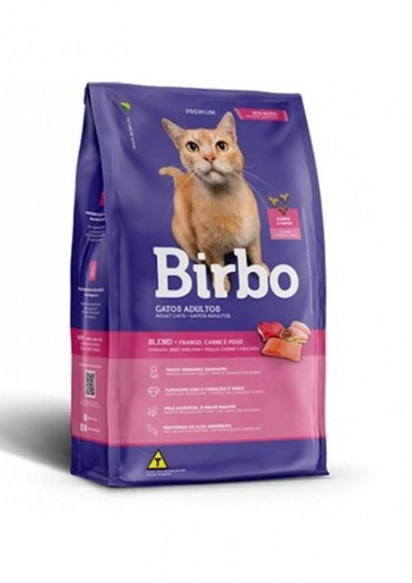 Birbo Premium Cats Mix, developed to please the cats' demanding palate. Complete and balanced diet with selected ingredients, animal and vegetable proteins, enriched with vitamins and minerals at levels suitable for adult cats. Birbo Cats Mix contains Taurine, an amino acid essential to the diet of cats that helps mantains vision and heart health and contains extract of Yucca Schidigera, which acts at the intestinal level, reducing the odor of feces. Guaranteed Analisis Crude Protein (min.) 300g/kg (30%) Crude Fat (min.) 100g/kg (10%) Crude Fiber (max.) 35g/kg (3,5%) Ash (max.) 90g/kg (9%) Calcium (min./max.) 10g/kg - 24g/kg (1,0% -2,4%) Phosphorus (min./max) 8000mg/kg-16g/kg (0,8 - 1,6%) Sodium (min.) 3000mg/kg (0,3%) Taurine (min.) 1000mg/kg Saponin (min.) 7mg/kg Omega 3 (linolenic acid) (min.) 1000mg/kg (0,1%) Omega 6 (linelic acid) (min.) 10g/kg (1%) Moisture (max.) 100g/kg (10%) Metabolizable Energy 3750kcal/kg Made In Brazil