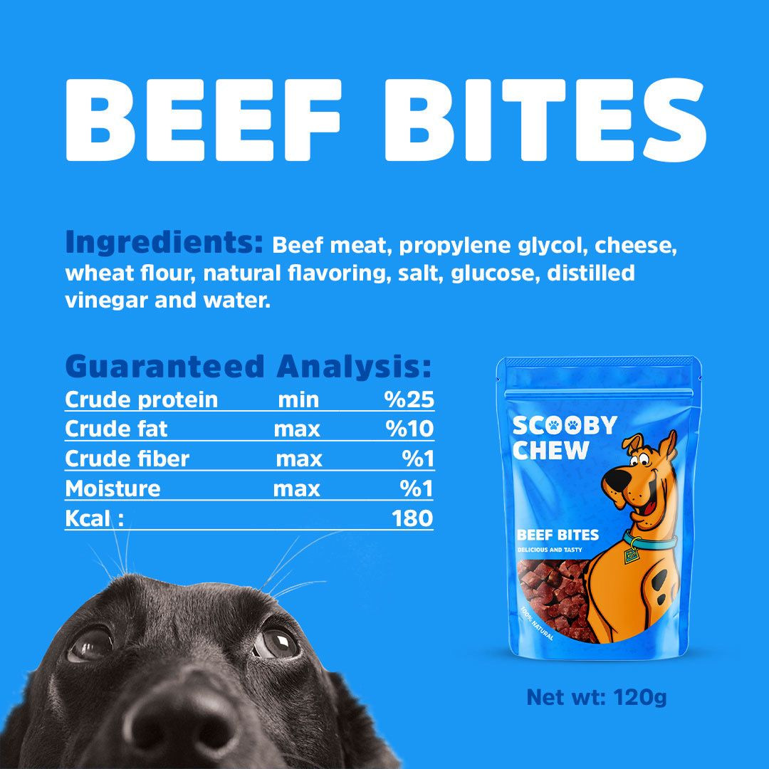 Beef Bites are specially formulated for easier digestion. Filled with highly nutritious and all natural flavoring, these Beef Bites are made with 100% pure beef, with no additives or filler Feeding Guide Great for dogs and puppies training. A healthy and nutritious snack, disguised as a lovable treat. Always monitor your dog while eating.