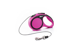 3 m cord leash For little dogs, cats and other small animals up to max. 8 kg Pocket-format Comfortable short-stroke braking system Soft grip Chromed snap hook Product weight: 110 g approx. blue