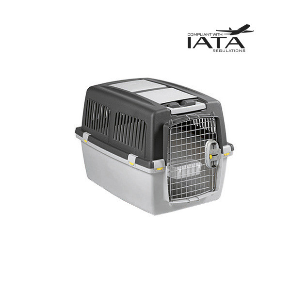 Dimensions : INT. DIM: 64,5x46x41h 25,4"x18,1"x16,1"h EXT. DIM: cm 71x51x50h 27,95"x20,08"x19,68"h Carrier for medium sized dogs provided with a plastic hood, produced according to IATA regulation. Weight: 4,696 kg / 10,35 lbs Practical carrier provided with anti-pressure relief stripes on the metal front door, side fastening door with latch, and fastener kit for safety to allow a safe transport for your pet. Produced according to IATA regulation. The 4 wheels set completes the product are to be sold separately. NOTE: Provide to buy your pet carrier in advance, in order to let your pet get gradually accustomed to the box.