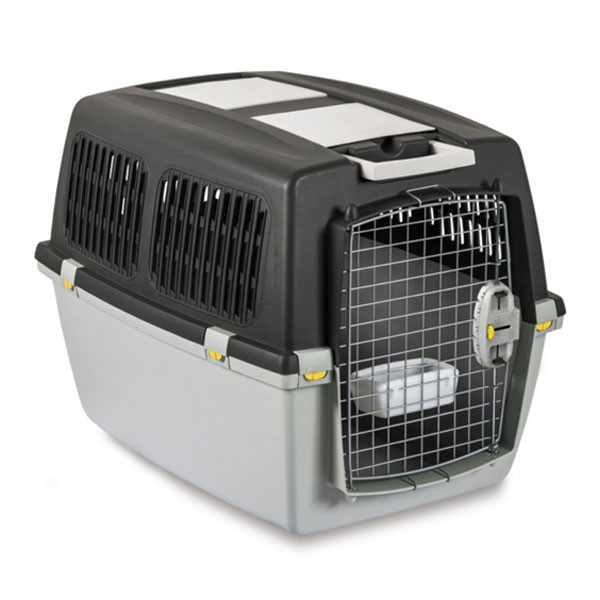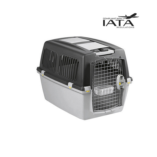 Dimensions: INT. DIM: cm 72,5x53x50,5h 28,5"x20,9"x19,9"h EXT. DIM: cm 81x61x60h 31,90"x24,00"x23,60"h Carrier for medium sized dogs provided with a plastic hood, produced according to IATA regulation. Weight: 6,857 kg / 15,12 lbs Practical carrier provided with anti-pressure relief stripes on the metal front grid, side fastening door with latch, and fastener kit for safety to allow a safe transport for your pet. Produced according to IATA regulation. The 4 wheels set completes the product are to be sold separately. NOTE: Provide to buy your pet carrier in advance, in order to let your pet get gradually accustomed to the box.
