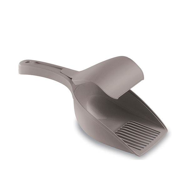 Dimensions: cm 27,5x12,5x11h Universal shovel Twice is sturdy and handy for multiple uses, the practical hole on the handle allow it to be hung on the wall. Twice shovel is entirely made of plastic, with small slits and a lid for a better hygiene, it can also be used as a measuring scoop for food.