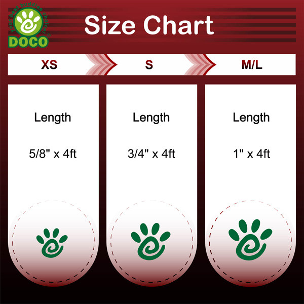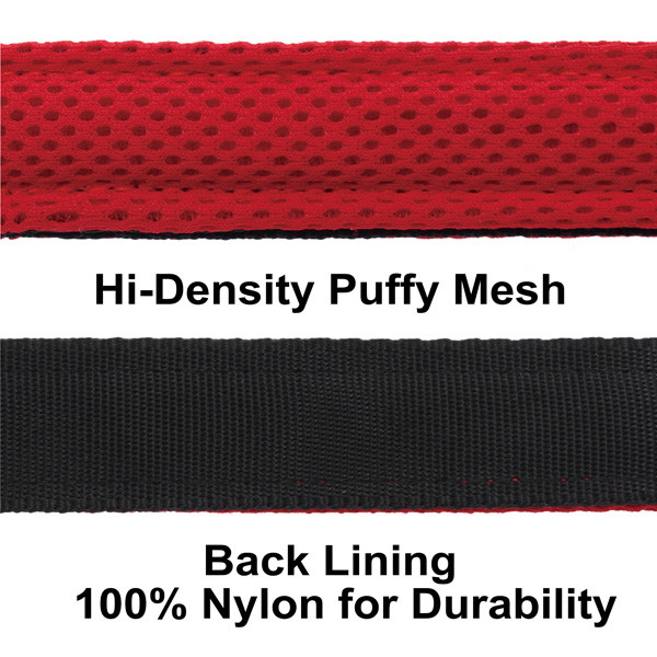 DOCO® Puffy Mesh Leash features lightweight and durable high quality air mesh that provides total control . Dual layered for higher tensile. Chrome polished, zinc alloy durable metal 360° swivel hook is comfortable to snap on any dog collar or harness. Solid and vibrant colors are easy to see. Make sure to select the matching DOCO® breathable air mesh collar or harness to complete your buddies’ look! Air Mesh is breathable and light weight, keep your pet cool and ventilated and super soft and comfortable on Dog's skin and fur. * Match with DOCO® Puffy Air Mesh Collar: DCA102 * Match with DOCO® Air Mesh Harness: DCC301, DCC302, DCA301 Special Features Hi-Density quality air mesh fabric Breathable and SUPER LIGHT WEIGHT Dual Layered mesh for higher tensile strength 360° Heavy duty zinc alloy swivel hook that prevents tangles Solid color mesh front & smooth black webbing in the back for comfort hand touch Soft and silky grip feel on the loop Vibrant colors are easy to see at all times! Size Chart XS 5/8" x 48" (1.5 x 120cm) S 3/4" x 48" (2.0 x 120cm) M / L 1.0" x 48" (2.5 x 120cm) - Medium & Large are same size