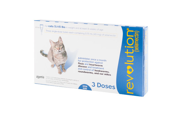 What is Revolution® (Selamectin)? Revolution® (Selamectin) is a safe and simple monthly topical medication used to protect your dog or cat from heartworms, fleas, and ear mites. Revolution® (Selamectin) is also used on dogs for the treatment or prevention of fleas, the American Dog Tick, ear mites, and canine sarcoptic mange. When used on cats it is also used to treat or prevent fleas, ear mites, hookworms, and roundworms. Revolution® (Selamectin) requires a prescription from your veterinarian. (3 Pack = 3 doses which lasts 3 months.) For: Dogs (6 weeks of age or older and no weight requirement), Cats (8 weeks of age or older and no weight requirement) Benefits: Protects your pet from heartworms and fleas Fights both internal and surface parasitic infections Treats Sarcoptic mange in dogs Treats and controls ear mites Controls American Dog Tick infestation Treats and controls roundworms and hookworms in cats Only administered once a month Safe and easy to use How does Revolution® (Selamectin) work? Revolution® (Selamectin) works by penetrating the skin and entering your pet's bloodstream. Concentrations of selamectin, the active ingredient, in the tissue and bloodstream prevent heartworm disease. Selamectin also redistributes into the skin from the bloodstream and kills adult fleas, American dog ticks, and ear mites, and prevents flea eggs from hatching. It is also an anthelmintic, which means it fights to expel parasitic worms. Parasites ingest the drug when they feed on the animal's blood. Revolution® (Selamectin) is safe for pregnant and lactating pets. Cautions: Side effects are uncommon, with less than 1% of dogs showing signs of digestive upsets. It is not advisable to use Revolution® (Selamectin) in pets that are ill or underweight. Collies and herding dog breeds may have a reaction to the ingredient selamectin if given over the recommended dosage amount. If your dog is a collie or other herding dog breed and your veterinarian has prescribed Revolution® (Selamectin), we urge you to monitor your pet for 8 hours and call your vet if your dog displays any signs of weakness, staggering, dilated pupils, trembling, drooling, or pressing his or her head against a wall. Brand Name: Revolution® (Selamectin) (Zoetis) Generic Name: Selamectin (see-la-mek-tin) What is the most important information I should know about Revolution® (Selamectin)? Revolution® (Selamectin) is a prescription medication applied topically once a month. Do not use Revolution® (Selamectin) on puppies under 6 weeks of age or kittens under 8 weeks of age. According to the product literature, Revolution® (Selamectin) is safe for use on pregnant or lactating dogs and cats. What should I discuss with my veterinarian before applying Revolution® (Selamectin) on my pet? Tell your veterinarian if your pet has ever had an allergic reaction to the medication. How should Revolution® (Selamectin) medication be used? Apply Revolution® (Selamectin) exactly as directed by your veterinarian. If you do not understand the directions ask your pharmacist or veterinarian to explain them to you. Revolution® (Selamectin) is available as unit of use applicator tubes containing the specific amount of medication based on the weight of your pet. Revolution® (Selamectin) is available as a 15mg/0.25ml puppy/kitten dose for puppies older than 6 weeks and kittens older than 8 weeks weighing up to 5 lbs. Revolution® (Selamectin) is also available for cats 5.1-15 lbs (45mg/0.75ml), 15.1-22 lbs (60mg/1ml), and for dogs 5.1-10 lbs (30mg/0.25ml), dogs 10.1-20 lbs (60mg/0.5ml), 20.1-40 lbs (120mg/1 ml), 40-1-85 lbs (240mg/2 ml) and 85.1-130 lbs (360mg/3ml). For dogs over 130 lbs use the appropriate combination of tubes. The entire contents of the tube should be used. Do not split the contents as the accuracy of the dose and effectiveness of the medication cannot be assured. Bathing or shampooing your pet 2 or more hours after treatment will not reduce the effectiveness of Revolution® (Selamectin). Keep this medication away from children and pets. What happens if I miss applying a dose of Revolution® (Selamectin)? Give the missed dose as soon as you remember. Do not give a double dose of the medication. What happens if I overdose my pet on Revolution® (Selamectin)? Seek emergency veterinary medical treatment. Symptoms of overdose, while rare, may include salivation and lack of coordination, as well as symptoms listed below as side effects. What should I avoid while using Revolution® (Selamectin) on my pet? Because humans can contract hookworms from animals, it is important to maintain good personal hygiene. It is also important to eliminate fleas on your pet and in the household and to not feed your pet rodents or uncooked meat or fish. To prevent reinfection, daily cleanup of stools is recommended. Do not use on sick, weak, or underweight animals. Do not apply to wet hair. Dogs should be tested for heartworms prior to using Revolution® (Selamectin). In humans, Revolution® (Selamectin) may be irritating to skin and eyes. Wash hands thoroughly after applying Revolution® (Selamectin) to your pet. What are the possible side effects of Revolution® (Selamectin)? Side effects of Revolution® (Selamectin) that may occur include temporary hair loss at the site of application, loss of appetite, drooling, vomiting, diarrhea, drowsiness, rapid breathing, increased heart rate, and muscle tremors. What other drugs will affect Revolution® (Selamectin)? Do not apply Revolution® (Selamectin) to your pet if already giving an alternate heartworm medication. When switching from another heartworm medication, begin Revolution® (Selamectin) when the next dose of the heartworm medication is due.